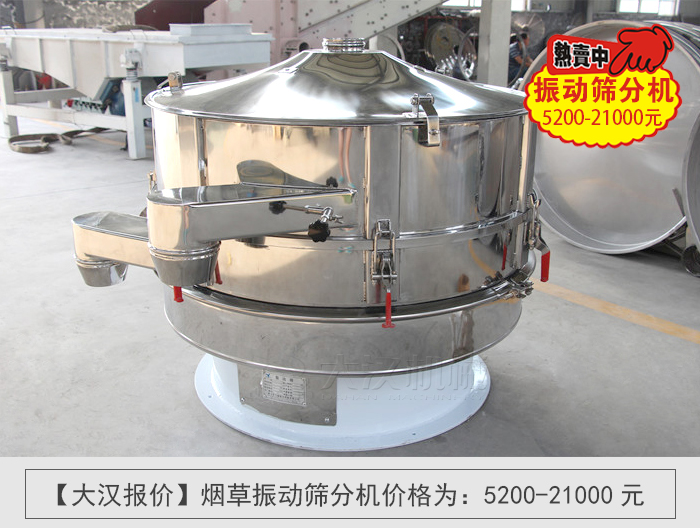以上就是大漢機(jī)械為您帶來的煙草振動(dòng)篩分機(jī)多少錢一臺(tái)了, 如果您還有什么問題可在線咨詢客服,大漢機(jī)械為您24小時(shí)在線服務(wù)。