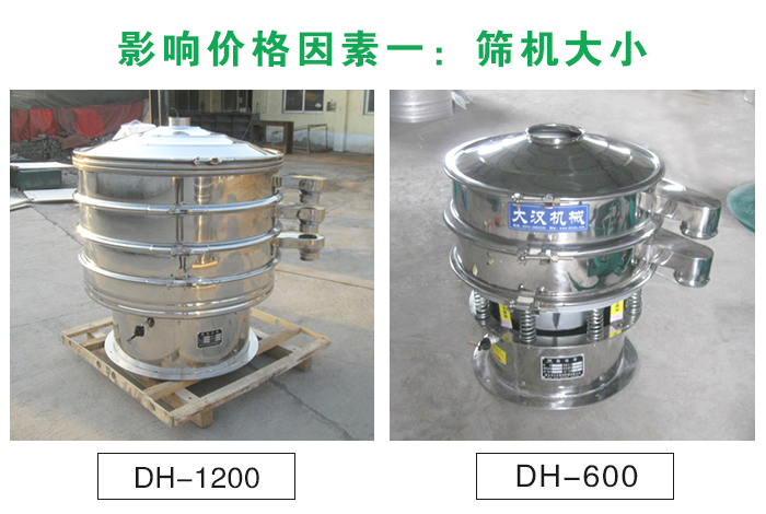 煙草振動(dòng)篩分機(jī)的型號(hào)大小有多種(DH-400、DH-600、DH-800、DH-1000、DH-1200、DH-1500、DH-1800等)不同的型號(hào)大小所配置的振動(dòng)電機(jī)與價(jià)格也是不同的,每個(gè)型號(hào)之間相差幾百到上千元不等。