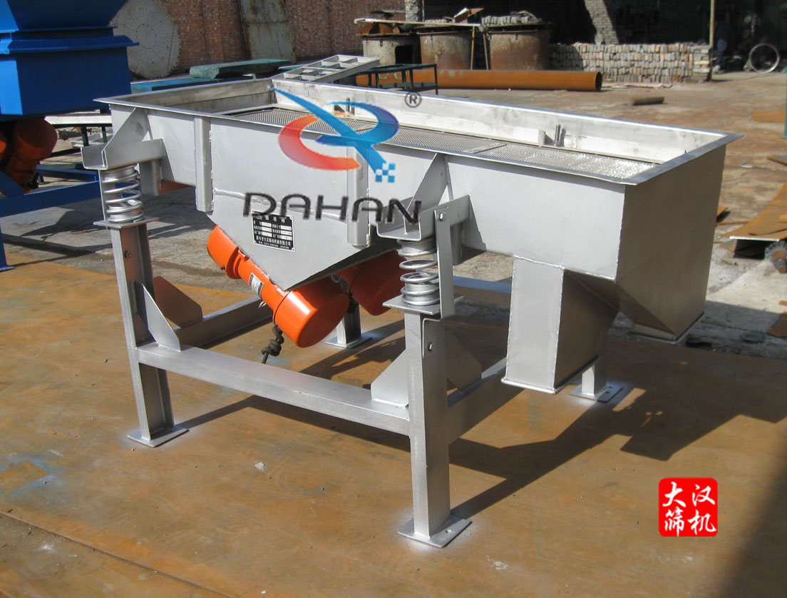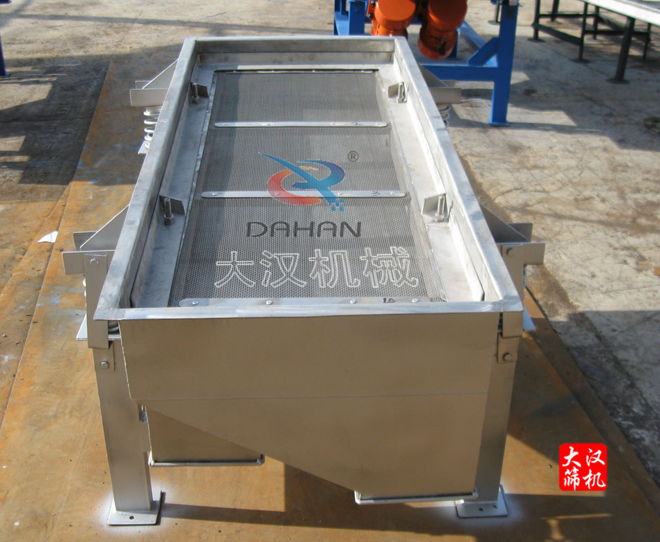“大漢牌”DZSF-512-1S食品直線振動篩篩面寬為50mm,長1200mm,一層篩網二出口,與物料接觸部材質以及直線篩篩網均為304不銹鋼,內部打磨拋光,干凈衛生,支架以及電機板、導力板為Q235碳鋼材質,噴防銹漆。