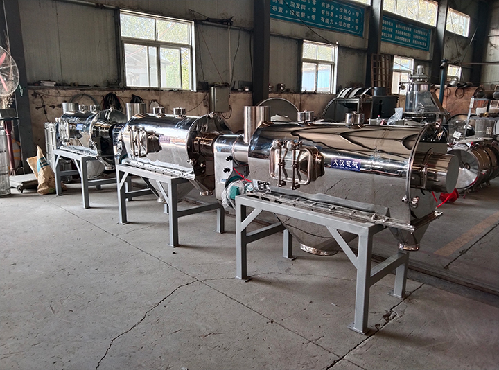 中藥粉臥式氣流篩是微細粉物料篩分的專用篩分機。微細粉物料易粘附、粒徑小、質輕、易懸浮等特點;國內現有旋振篩,直線篩利用其重力勢,激振力,彈力作業很難篩分,易引起粉塵飛揚,更難達到技術要求。針對這一情況,大漢工程技術人員經過多年來研究試制,開發出專門用于微細粉篩分的新產品――氣流篩。該機適合80-530目有網各種粉狀物料篩選分級,其篩分效率高、產量大、自動進料排料、連續作業、無污染,使以往用各種振動篩難以進行高細度精密篩分作業成為易事。經過對120-180目輕鈣、300目重鈣、400目活性鈣、300目山楂粉、320-500目鋅粉、500目氧化鐵黑、氧化鐵紅、120-160目中藥粉、180-270目石英粉等物料的篩分使用,測得每平方米篩網面積每小時產量均在一噸左右,同時測得篩分效率在95%以上,空氣含塵量低于10mg/m3。